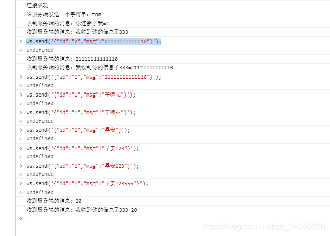 ws.send('{"id":"2","msg":"21111111111110"}');