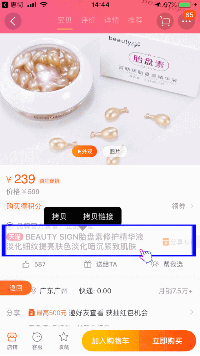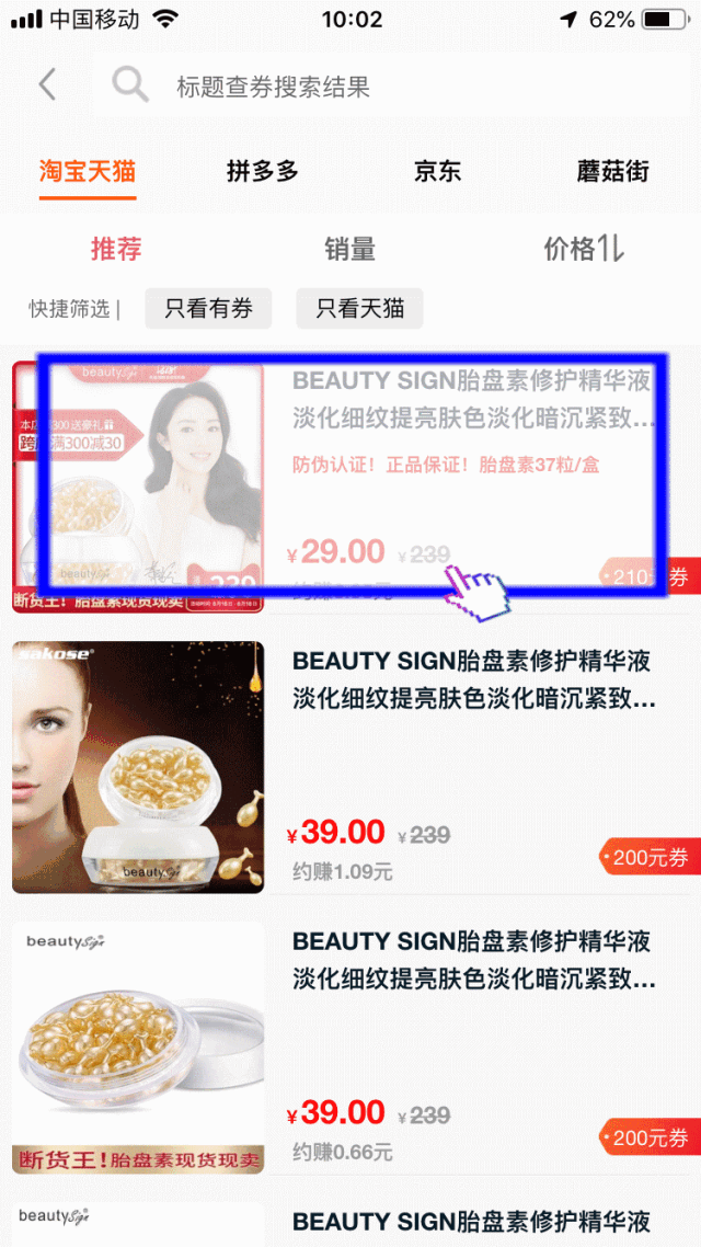 大額優惠券 一般都是幾百的大額優惠券 化妝品居多 一些是店家刷量的虧本在銷售 里面的東西直接到淘寶購買基本都是只有幾十的券 有些還是沒有的
