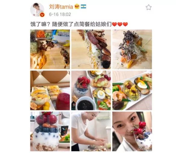 就在今年的上海電影節,當各大明星藝人都打扮得帥氣靚麗去走紅地毯時,劉濤卻在家里悠哉自得曬起美食!