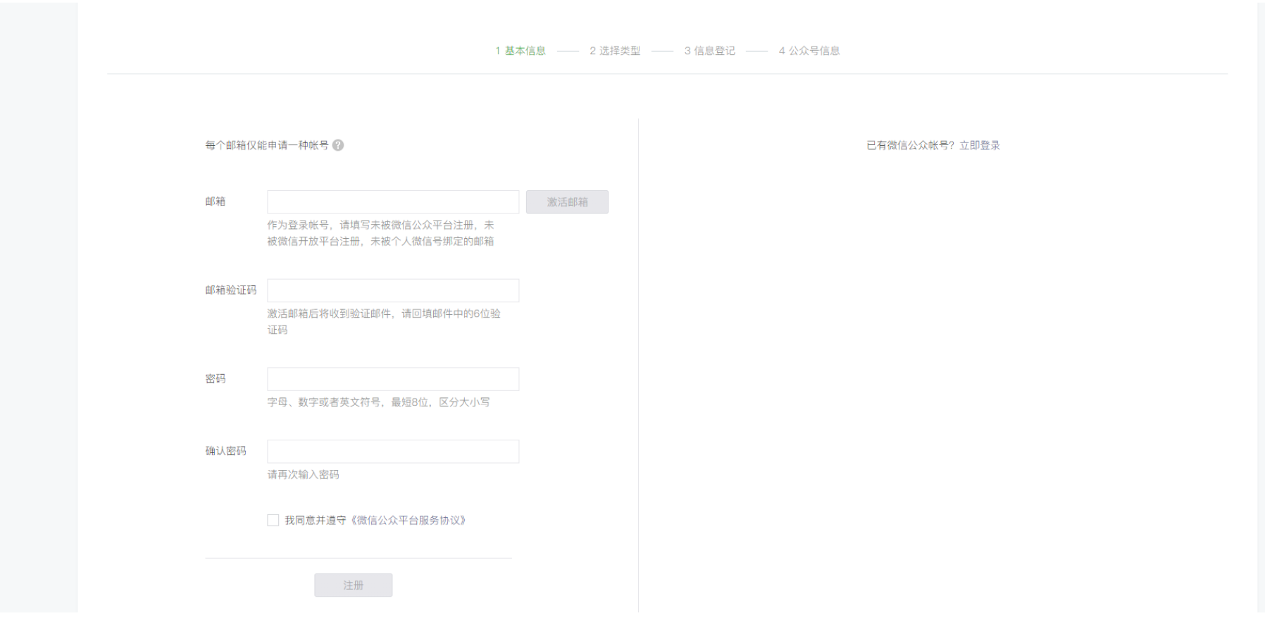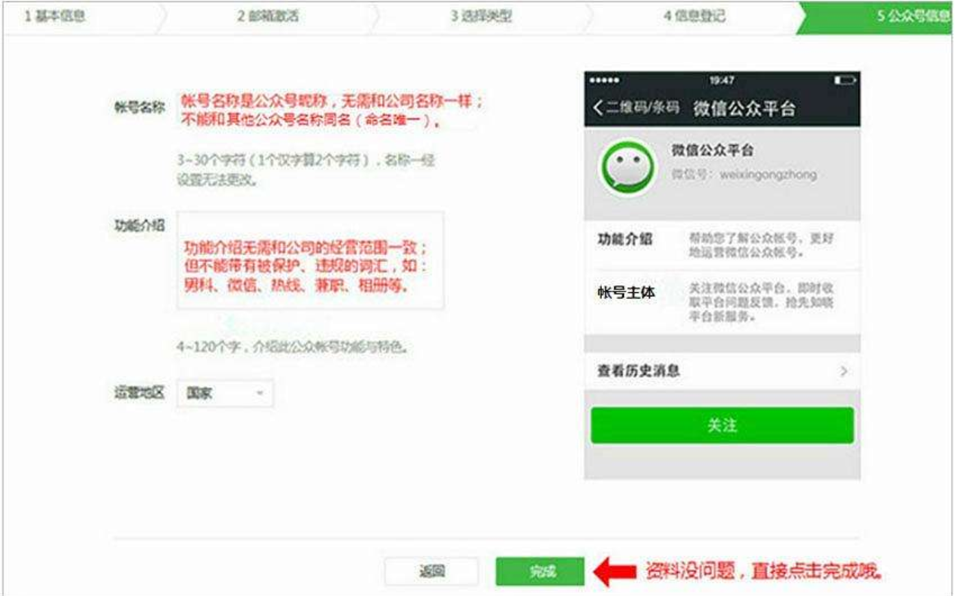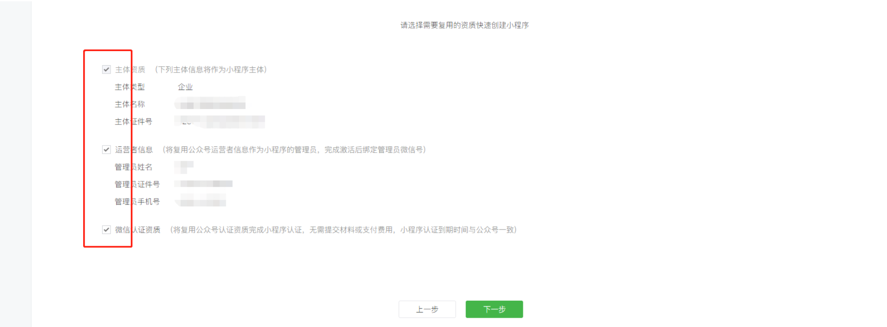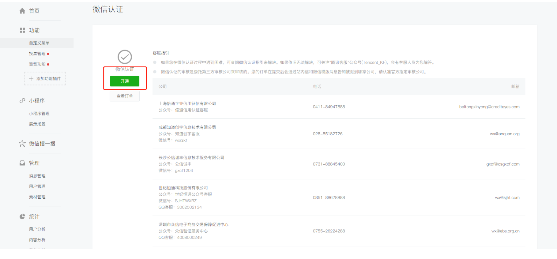 [TOC] # 準備材料 1,兩個郵箱號碼(作為公眾號和小程序的登陸賬號,沒有的話可以注冊網易郵箱) 2,法人身份證 3,營業執照和相關資質文件電子版照片 4,綁定管理員名下銀行卡的微信 5,微信內有300元認證費(騰訊每年會收取300元認證費,先注冊公眾號,關聯同主體小程序,只需要一份認證費) * * * # 申請注冊公眾號 瀏覽器打開網址https://mp.weixin.qq.com,點擊“立即注冊”。 ![](https://img.kancloud.cn/2a/d1/2ad1078a5bc13ff9c549b60271b3202b_1825x497.png) 選擇注冊的帳號類型頁面,點擊選擇“服務號”。 ![](https://img.kancloud.cn/5d/3f/5d3f3c90d4b53f89cd814a56365b5de0_1840x710.png) 填寫郵箱賬號并激活郵箱,設置公眾號登陸密碼(注:不是郵箱密碼,是公眾號登陸密碼) ![](https://img.kancloud.cn/f3/2f/f32f555d8ad27cc340113045184f3778_1796x880.png) 選擇中國大陸,點擊確定 ![](https://img.kancloud.cn/75/2c/752cddcc92a746e5351376865d043483_1864x645.png) 點擊紅框處(千萬別選錯類型,選錯不可更改) ![](https://img.kancloud.cn/87/8a/878a7d62e993de9f35ef8446c88555ce_1839x801.png) 根據企業情況,選擇主體類型 ![](https://img.kancloud.cn/c0/9f/c09f9fa86716b6176b6bada1245c9196_1830x859.png) 填寫企業信息和管理員信息 ![](https://img.kancloud.cn/25/43/2543dfbb86032786cc5180bfc91df1e1_1809x866.png) 編輯公眾號信息 ![](https://img.kancloud.cn/13/f1/13f1709437a8638e91ee0223c4665485_1396x871.png) 下一步就是認證,點擊紅框部位 ![](https://img.kancloud.cn/c4/29/c429f7c1e8431be4a56d5edd65e9398a_1819x846.png) ![](https://img.kancloud.cn/70/78/7078a2348f32be3ef62d26fbfeb70bda_1841x834.png) ![](https://img.kancloud.cn/70/16/70162c387136293f0d7cea93df9ae69b_1813x816.png) 下載公函模板,并打印出紙質文件 ![](https://img.kancloud.cn/d7/3c/d73cd5035e756615308a2908d45bac7e_1830x780.png) ![](https://img.kancloud.cn/4c/b1/4cb1836154e9f198dab38c33833c8525_1791x869.png) 如果沒有打印機,可以點擊保存按鈕,保存到電腦內,拷貝到打印處打印 ![](https://img.kancloud.cn/16/52/165254bb013c9fcb3ace0bf6fa96e02c_1830x848.png) 在打印的公函上填寫管理員姓名和身份證號碼,(注:公司性質需要蓋公章,個體工商戶可以法人簽名。) ![](https://img.kancloud.cn/2a/89/2a89d27e80246d8bc69f8f91bcbe7c81_516x920.png) 清晰拍攝公函完整照片,存入到電腦內并上傳 ![](https://img.kancloud.cn/e2/bf/e2bf6a275db4739dd394adc66a6f9a79_1847x744.png) 根據要求填寫企業資質信息 ![](https://img.kancloud.cn/77/27/7727f8cb4f776de60c2afdbdf64b934e_1835x837.png) 用綁定法人銀行卡的微信掃碼 ![](https://img.kancloud.cn/8f/2a/8f2ac733bdbca7c21669424165f79fd6_1839x795.png) 填寫申請認證昵稱(公眾號名稱) ![](https://img.kancloud.cn/9a/60/9a601bbc5919817d195d60304578702e_1843x756.png) 根據實際要求選擇是否需要發票 ![](https://img.kancloud.cn/2e/7c/2e7c4a57a06da30cc7cc882515f21ff5_1847x835.png) ![](https://img.kancloud.cn/87/df/87df5104faef894d306b3b0ea6dedadb_1836x832.png) 掃碼支付300元認證費 ![](https://img.kancloud.cn/b5/8a/b58a94e71c2a24b5ed1e3a5e1ace095c_1837x720.png) 等待審核通過即可(期間會有工作人員電話認證,需要如實回答) ![](https://img.kancloud.cn/dc/82/dc82b676c8dfa8a4729d9e7e1de940ef_1840x600.png) # 注冊小程序 認證成功后,登陸微信公眾平臺,點擊小程序管理,選擇點擊紅框處 ![](https://img.kancloud.cn/cf/5b/cf5b6b68e5fe161d71d839fcf1b07502_1843x691.png) 用管理員微信掃描二維碼 ![](https://img.kancloud.cn/3b/2d/3b2d68654237c2e6d3e2f078f01de158_1847x709.png) 全部勾選,點擊下一步 ![](https://img.kancloud.cn/a5/2a/a52ae6c64680afceb028dc5d491c0d2c_1822x672.png) 輸入另一個準備好的郵箱號碼,填寫小程序密碼等信息 ![](https://img.kancloud.cn/bf/37/bf37fd874748a66d9ad4cdde1c37b5f1_1837x780.png) 進入郵箱激活小程序 ![](https://img.kancloud.cn/36/a5/36a5fb4013c446180b070f7b6b221e08_1844x719.png) 設置小程序管理員 ![](https://img.kancloud.cn/22/09/22098148bc07c2ff04852313ce55e047_1841x801.png) 編輯小程序名稱和頭像等信息 ![](https://img.kancloud.cn/71/a9/71a98168683750e10a4bf27be770bbed_1843x686.png) ![](https://img.kancloud.cn/8f/32/8f3274e4aaec48146b86ffa47ea22d4c_1674x862.png)