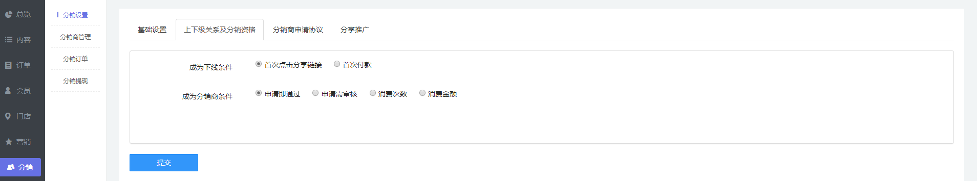 設置用戶成為分銷商下線的條件和用戶成為分銷商的條件