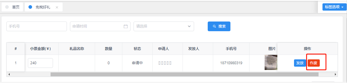 8.禮品發放人員在訂單列表中點擊“發放”按鈕進行禮品發放: