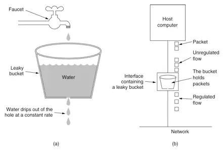 漏桶(Leaky Bucket)算法思路很簡單,水(請求)先進入到漏桶里,漏桶以一定的速度出水(接口有響應速率),當水流入速度過大會直接溢出(訪問頻率超過接口響應速率),然后就拒絕請求,可以看出漏桶算法能強行限制數據的傳輸速率.示意圖如下: